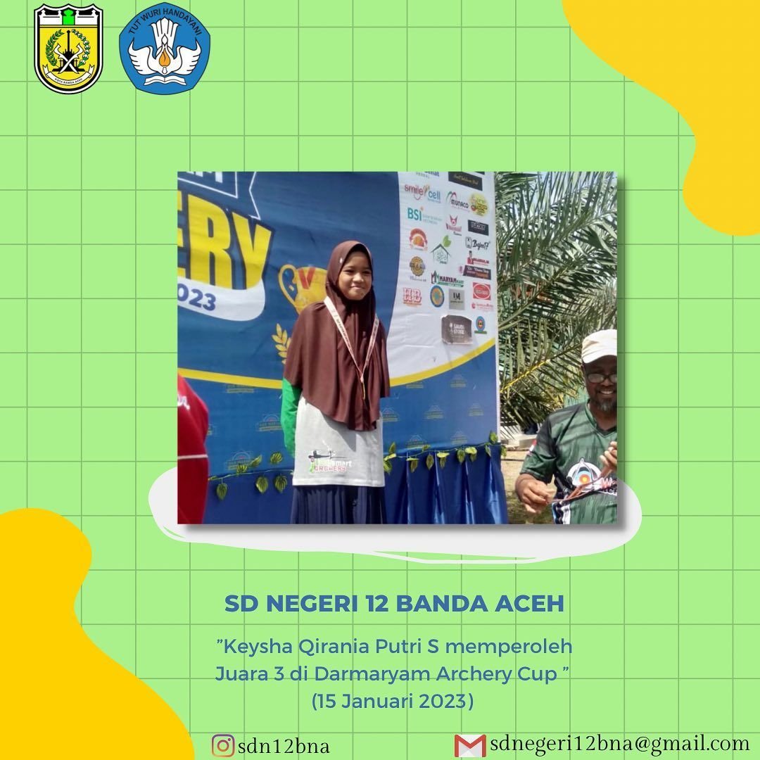 ![]() | Juara 3 Cabang Olahraga Memanah Keysha Qirania Putri, memperoleh Juara 3 Di Darmaryam Archery Cup (15 Januari 2023) |