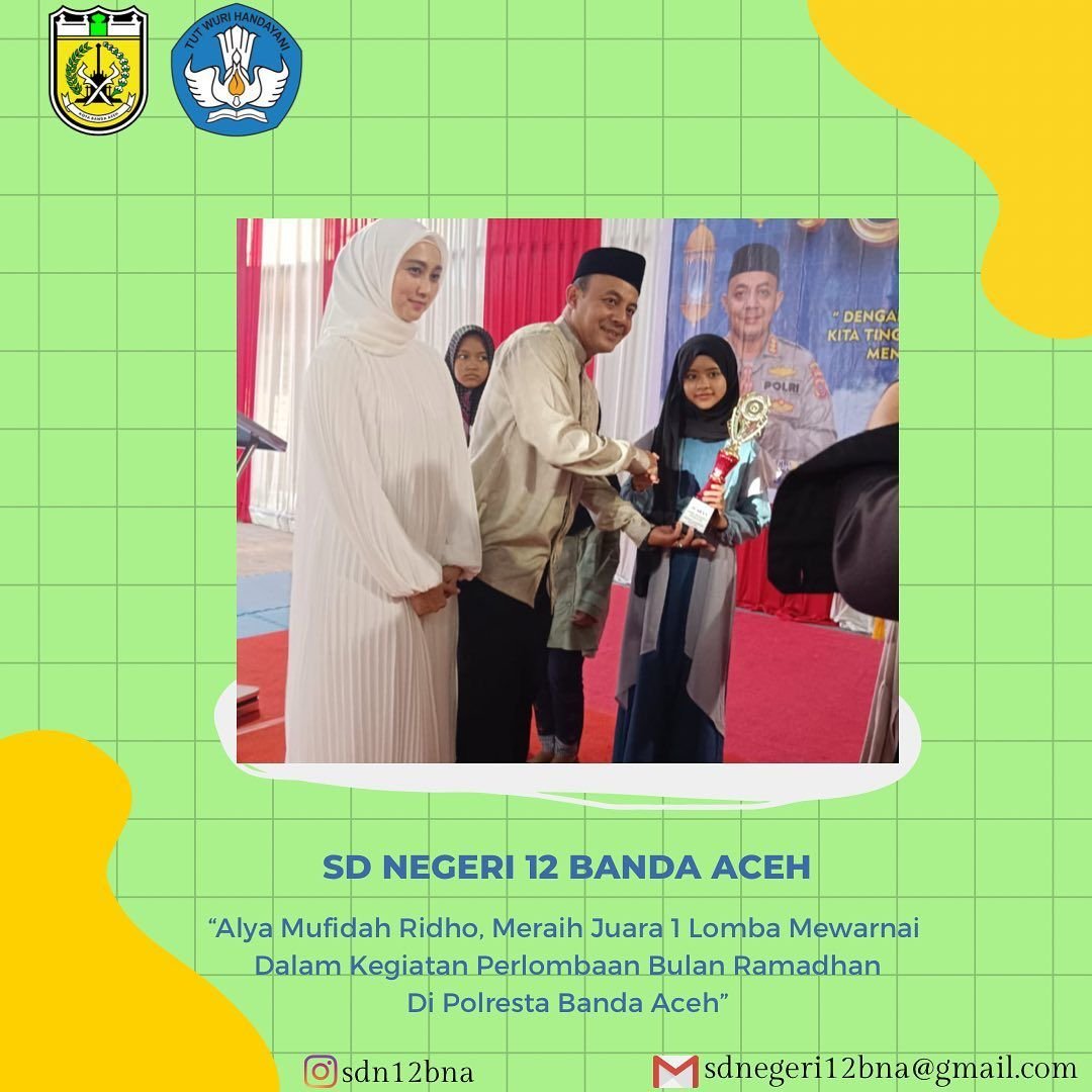![]() | Juara 1 Lomba Mewarnai Alya Mufidah Ridho, Siswi kelas 6 Tahun Ajaran 2022/2023 meraih juara 1 Lomba Mewarnai Dalam Kegiatan Perlombaan Bulan Ramahan Di Polresta banda Aceh |