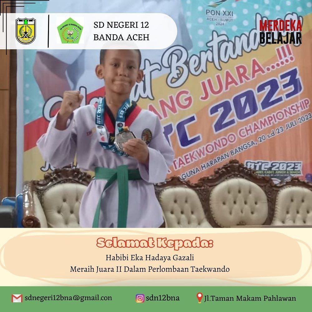 ![]() | Juara 2 Lomba Taekwondo Habibi Eka Hadaya Gazali, Siswa Kelas III-A, Kembali Meraih Juara 2 Dalam Perlomba Taekwondo Championship 2023, Kejuaraan Taekwondo Ketua Pengcab Kota Banda Aceh Level Se-Sumatra. |