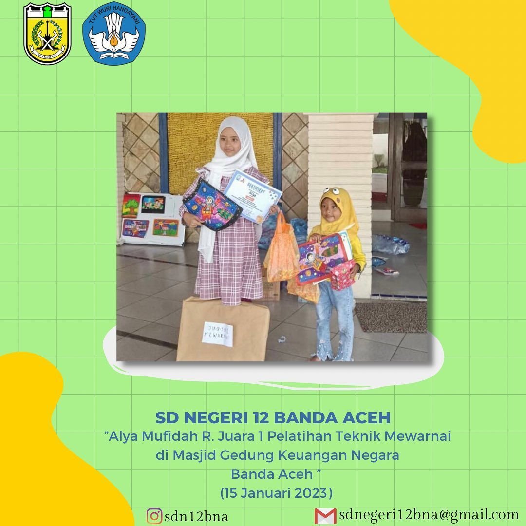 ![]() | Juara 1 Lomba Mewarnai Alya Mufidah, Siswi Kelas 6 tahun Pelajaran 2022/2023 Meraih Juara 1 Dalam Perlombaan Pelatihan Teknik Mewainai di Mesjid Gedung Keuangan Negara, Banda Aceh (15 Januari 2023) |